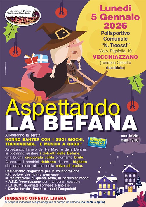 Aspettando l’arrivo dei Re Magi e della Befana, si potranno gustare i dolcetti delle Befane, una buona cioccolata calda e fumante brulè. Allieteranno la serata. Desideriamo ringraziare per la collaborazione tutti coloro che hanno permesso la realizzazione di questa festa, in particolar modo: