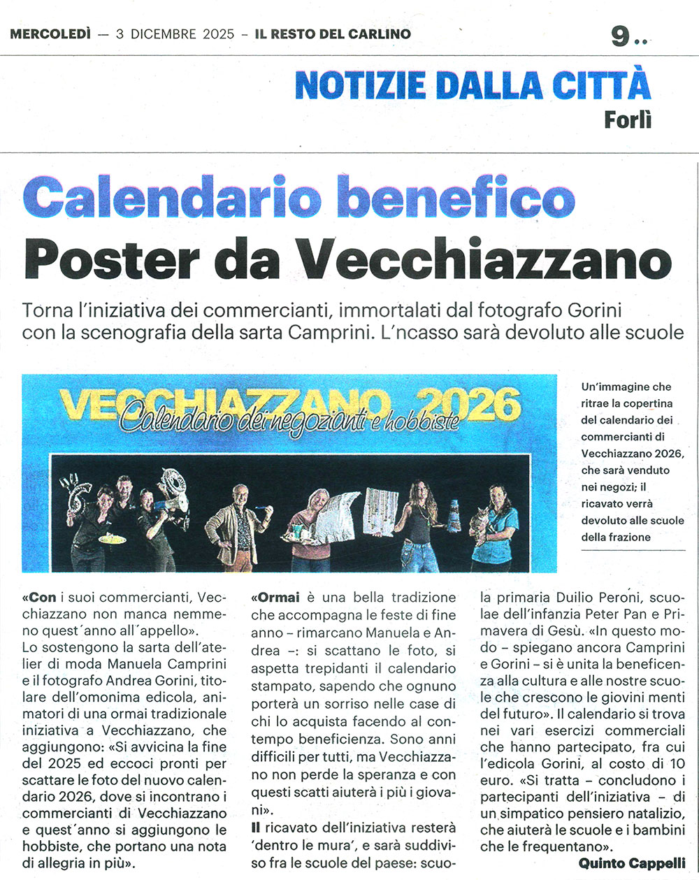 Si avvicina la fine del 2025 ed eccoci pronti per scattare le foto del nuovo calendario 2026 dove si incontrano i commercianti di Vecchiazzano e quest´anno si aggiungono le hobbiste che danno una nota di allegria in più.